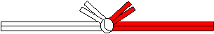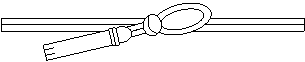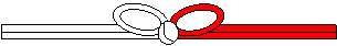 ゴムの端に房糸を付けて輪と房の先が出来る様に結ぶ